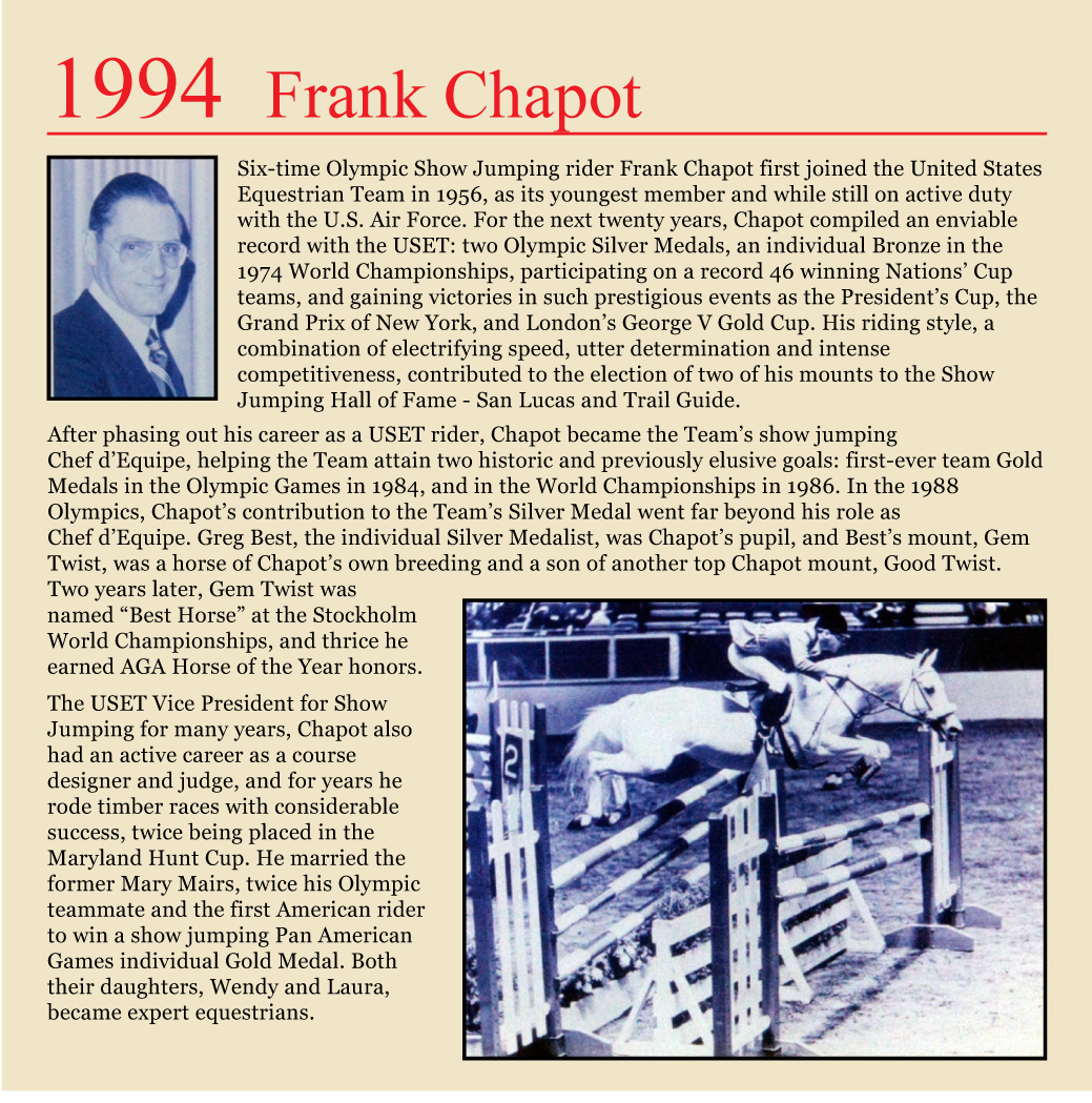 Click play to hear Frank Chapot's career with some of his personal thoughts